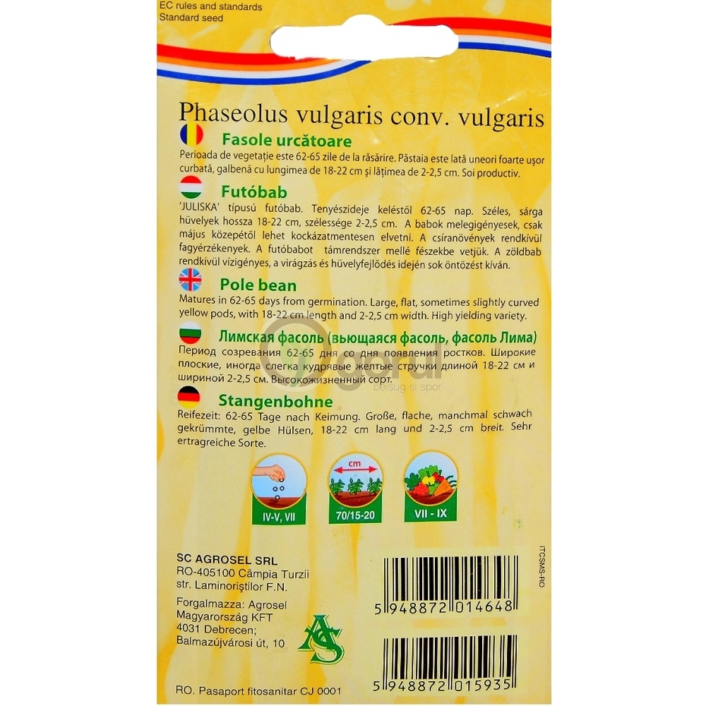 - fasole urcatoare cu perioada de vegetatie de 62 - 65 zile de la rasarire;