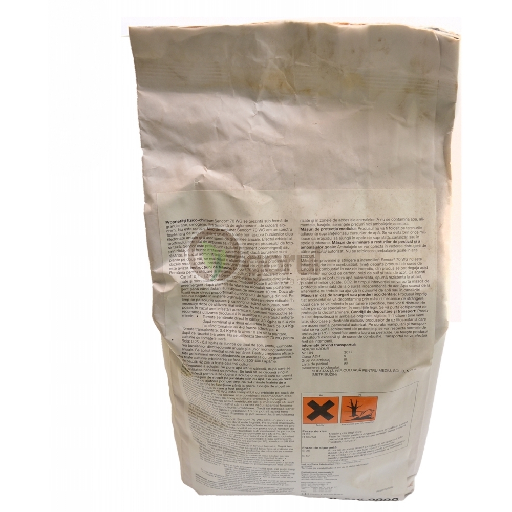SENCOR 70 WG se prezinta sub forma de granule fine, omogene, fara tendinta de aglomerare, de culoare alb-crem. Nu este coroziv.