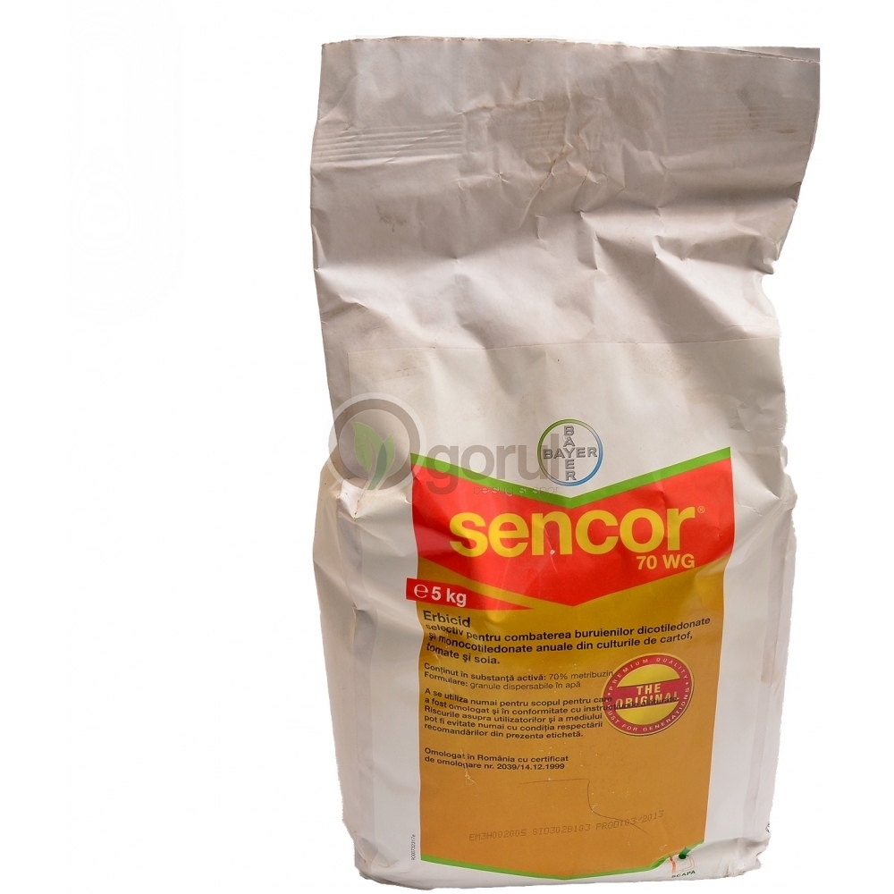 SENCOR 70 WG are un spectru foarte larg de actiune, avand un efect foarte bun asupra buruienilor dicotiledonate anuale si a unor specii de graminee anuale. Efectul erbicid al produsului este dat de actiunea sa inhibitoare asupra procesului de fotosinteza. Sencor este preluat prin radacini (tratament preemergent) sau prin radacini si frunze (tratament postemergent) daca buruienile sunt rasarite. In cazul administrarii postemergente, datorita patrunderii in plante pe doua cai, se realizeaza o eficacitate mai buna a produsului. La dozele recomandate, produsul este bine tolerat de culturile pentru care este avizat.