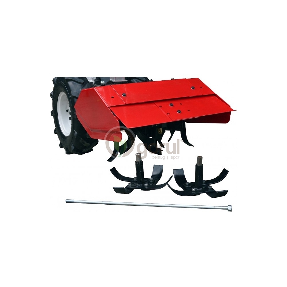 Ghidon reglabil sus/jos – stanga/dreapta, priza de putere, pe care poate monta bara de cosire sau freza de pamant, si roti mari - 6.00-8, posibilitatea de montare remorca si alte accesorii.